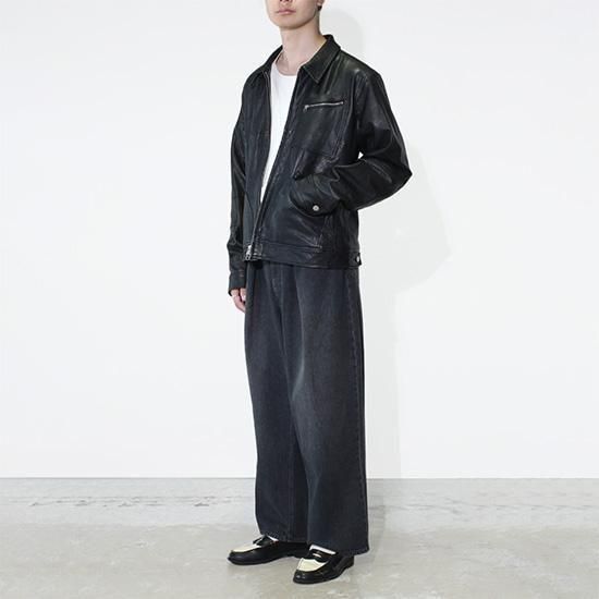 OLD PARK (オールドパーク) / ZIP UP LEATHER WORK JACKET - BLACK