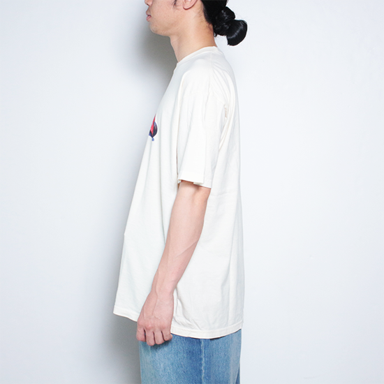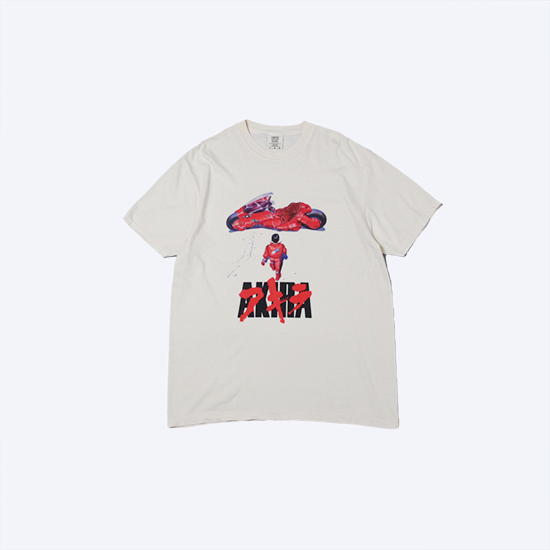 1988年に公開された伝説的アニメ映画『AKIRA』。その象徴とも言える金田の赤いバイクをモチーフにしたインパクト抜群のグラフィックをフロントに配した一枚です。作品の世界観を反映しながらも、ストリートウェアとしての完成度も高く、世代やジャンルを超えて支持されるデザインとなっています。