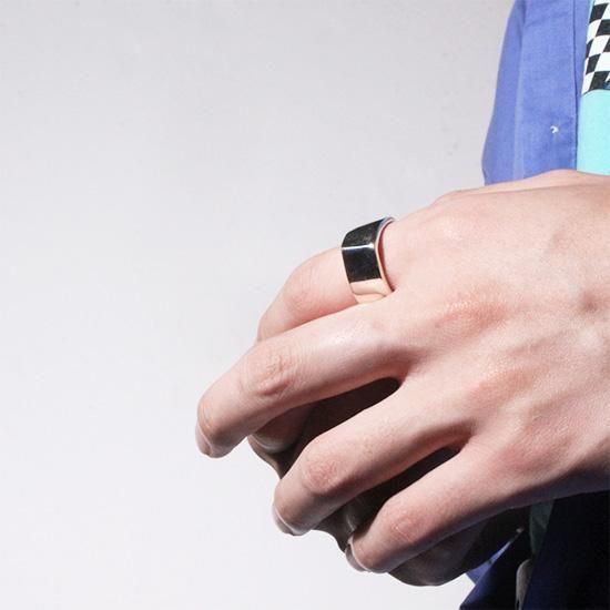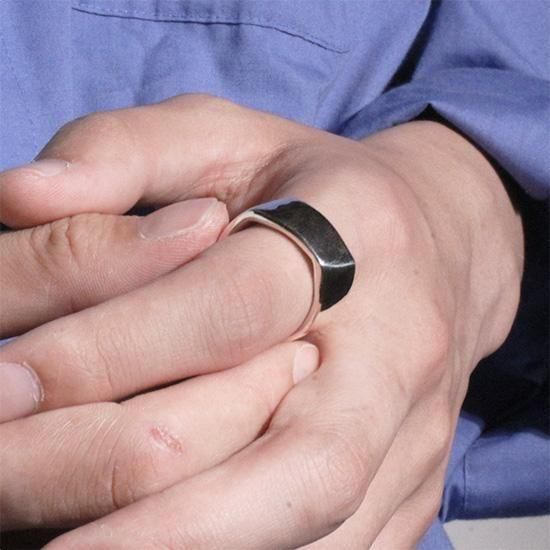 角ばったような、不思議なカタチが目を引くシルバーリング。