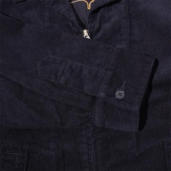 フロントには、ミリタリーウェアにも採用される1936年創業の米IDEAL社製ジッパーを使用。素材には14ウェルのコットンコーデュロイを採用し、天然繊維ならではの経年変化も楽しめます。縫製はワークウェア仕様のミシンを中心に、太番手の糸を使った細かいピッチでしっかりと縫い上げ、負荷のかかる部分には生地を巻き合わせることで強度を確保。長く愛用できるタフな作りが魅力です。
