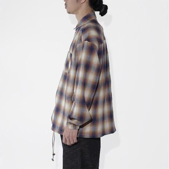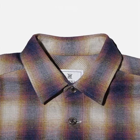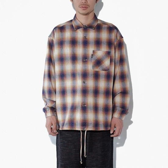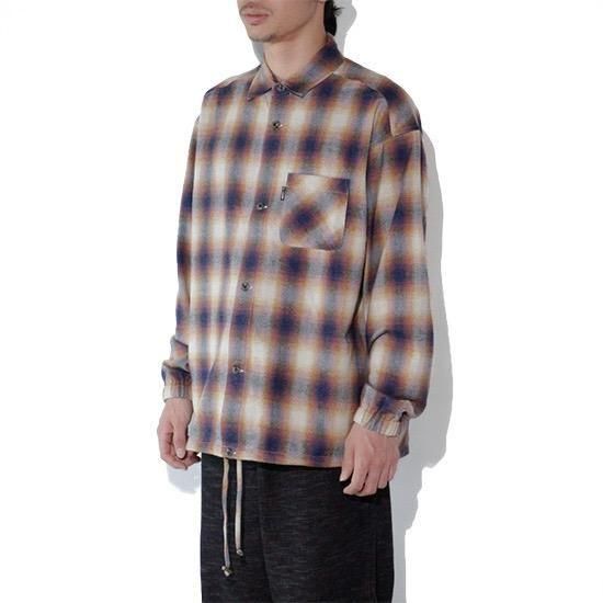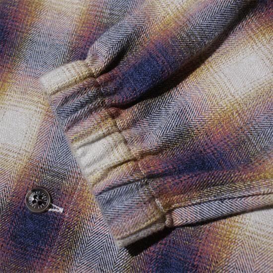 撚り杢のオンブレ生地を使用したチェックシャツ。