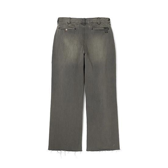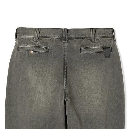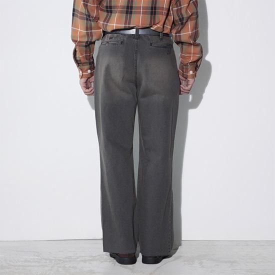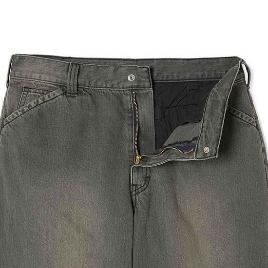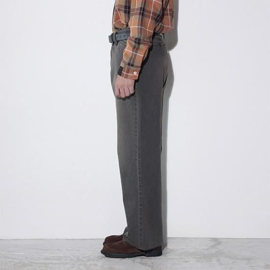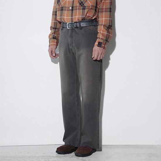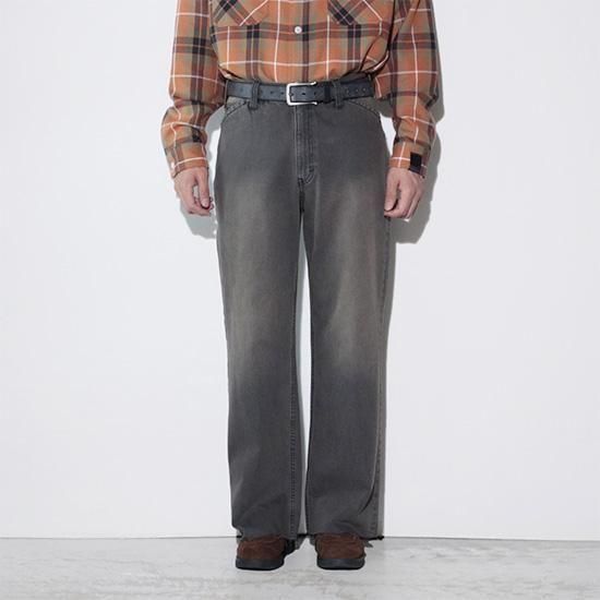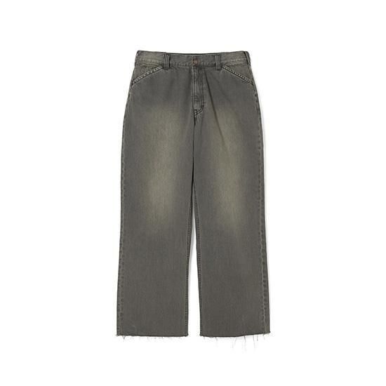 シルエットはワイドなストレートで、素材にはバイオウォッシュ加工を施した11ozデニムを使用し、タフさと程よいこなれ感を兼ね備えています。