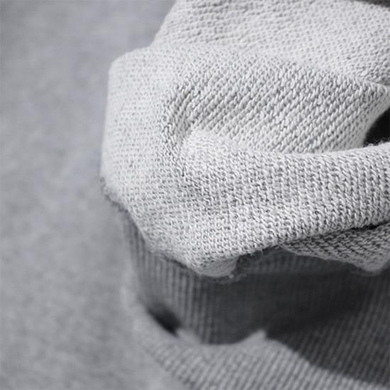 空紡糸ならではのドライタッチな表面と、甘撚りループの柔らかな裏地が快適な着心地を実現します。