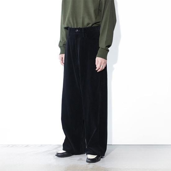 遠州地方の歴史ある機屋で旧式の織機を使用して織り上げたコーデュロイ素材を使用したバギーフィットの5ポケットパンツです。