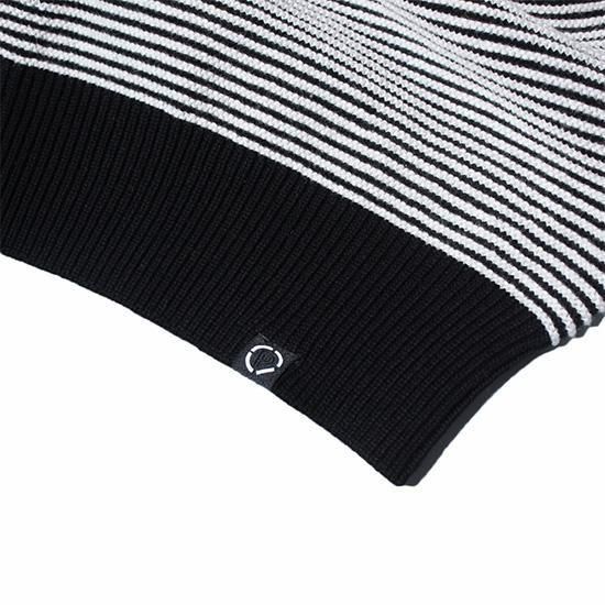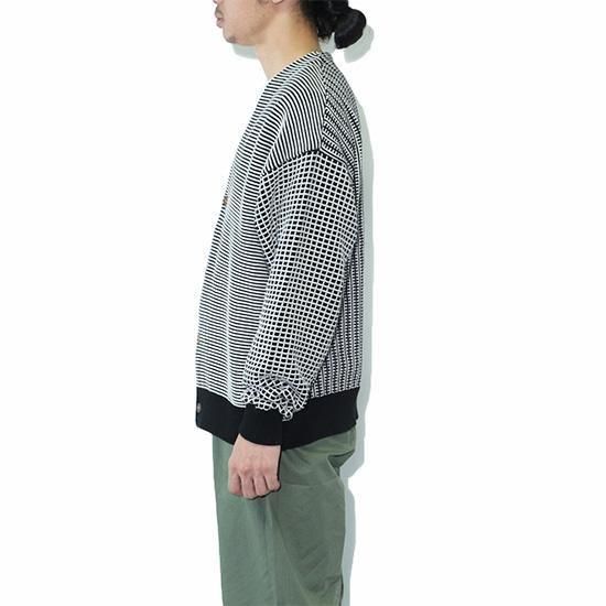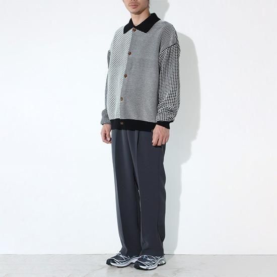 同じ糸を使いながら編み目の異なるニット地をパネルごとに切り替えたVカーディガン。