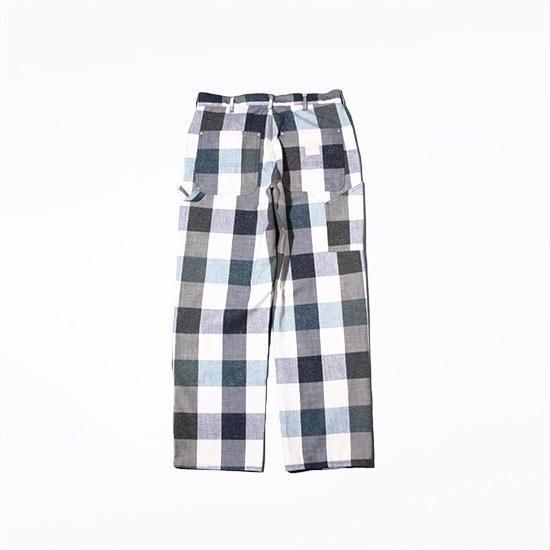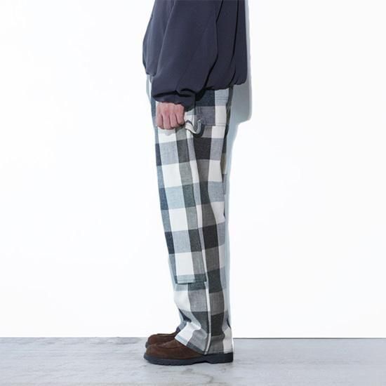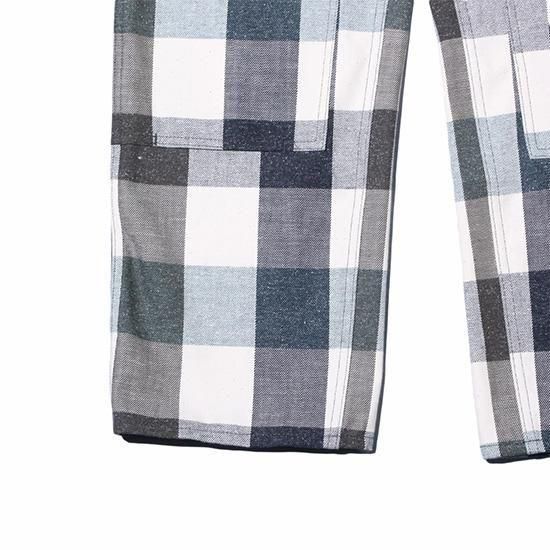 無骨なダブルニー仕様のペインターパンツデザインとチェック柄のギャップが新鮮です。