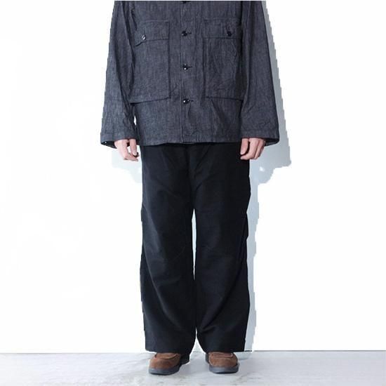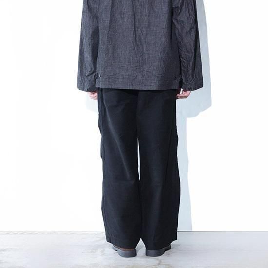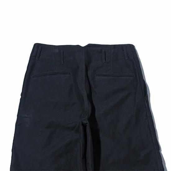生地はデットストックの黒色でシンプルなモールスキン素材。