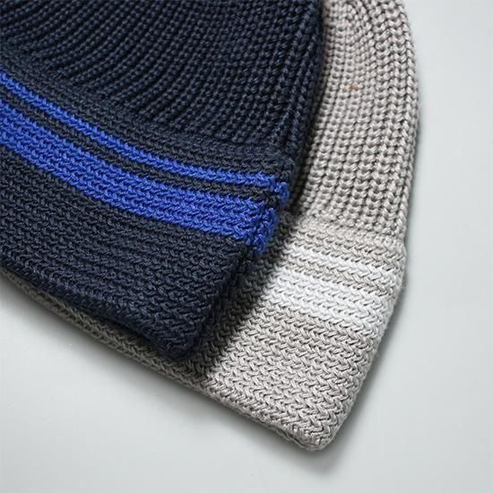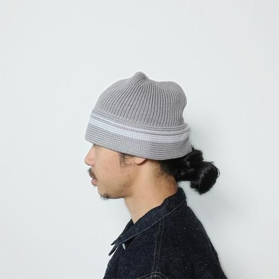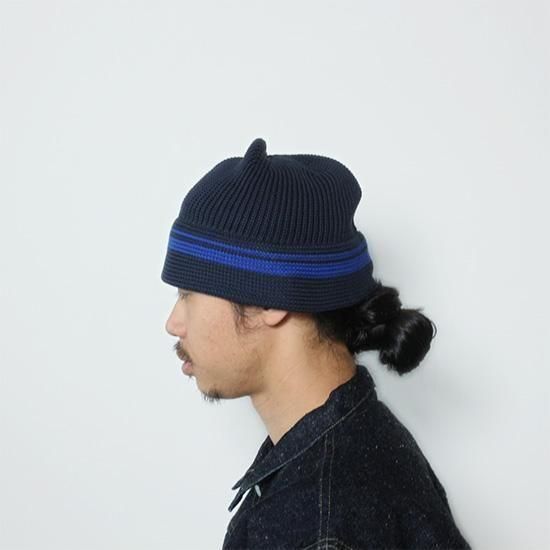 トップが丸く、ブリムが下向きについたセーラーハット調のニットHAT。