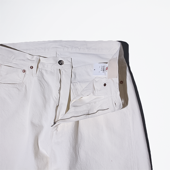生地は、岡山県の歴史のある機屋にて、旧式の力織機(シャトル織機)で、ゆっくりと丁寧に織り上げた、独自の風合いが特徴のセルビッチデニム。