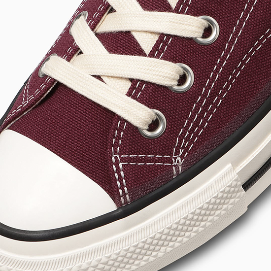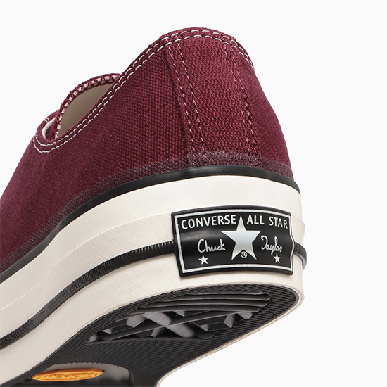 1960年代のALL STARに見られる三ツ星ヒールラベルやサイドステッチ、ソールの糊のはみ出しなど当時のディテールを再現。