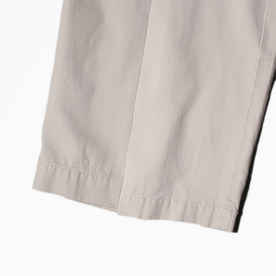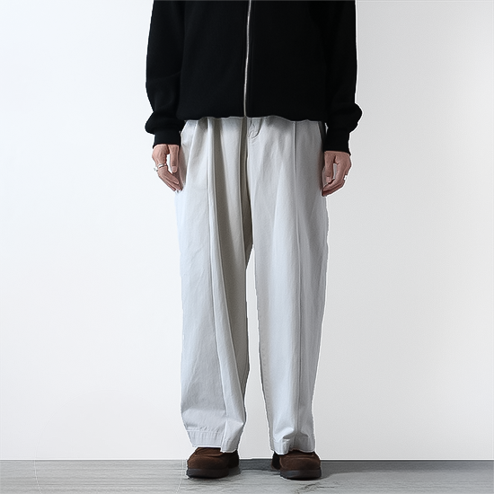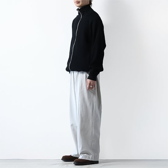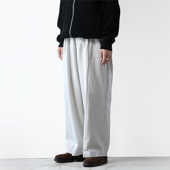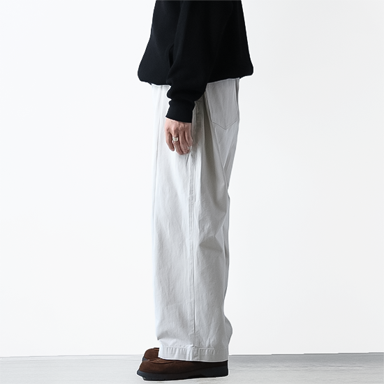 シルエットはワイドで、ドッキング部分の縫製が内側となりよりすっきりとした見た目となりました。