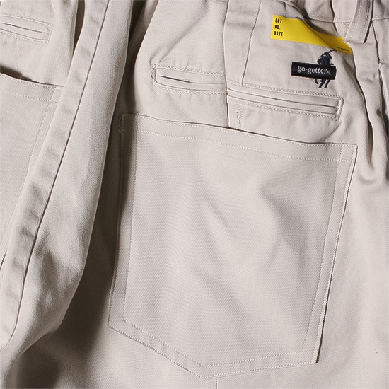 さらに、貼り付けのバックポケットも施されており、機能性も兼ね備えている。