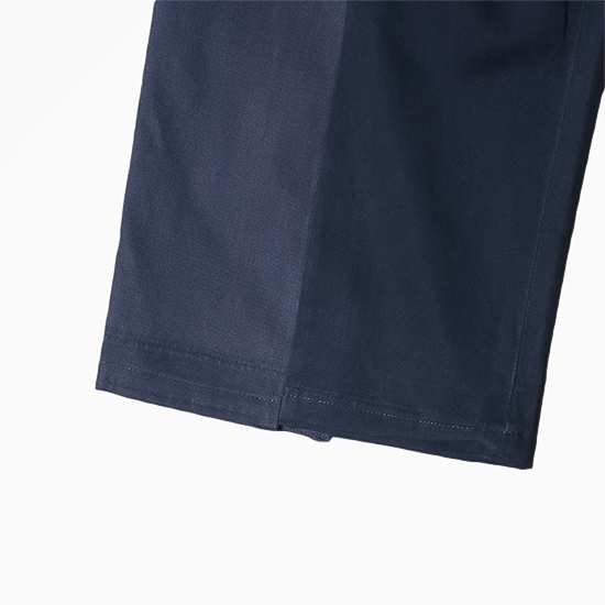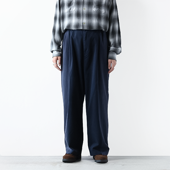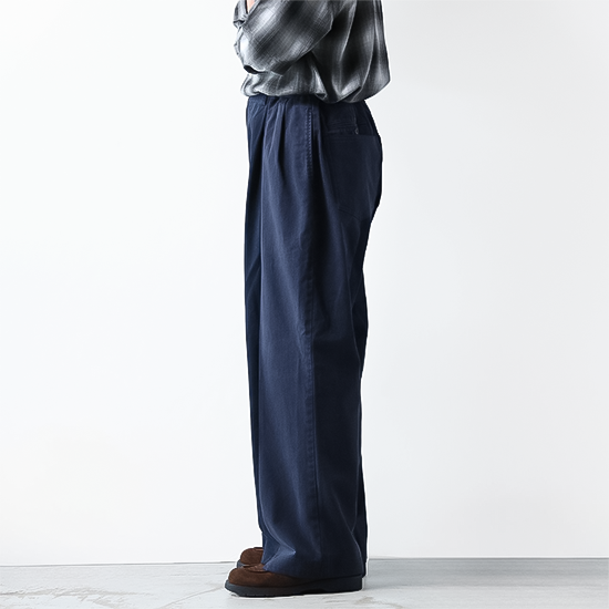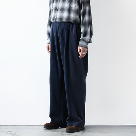 シルエットはワイドで、ドッキング部分の縫製が内側となりよりすっきりとした見た目となりました。