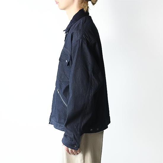 上質な米綿をブレンドしたナチュラルなムラ形状の10ozデニムを採用し、経糸にはピュアインディゴのロープ染色、緯糸にはグレーの反応染料を使用。奥行きある色合いが、アメリカンヴィンテージワークを彷彿とさせます。