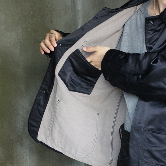 定番のオーセンティックなスタイルのカバーオールジャケットが、個性的なオリジナル素材で登場。
