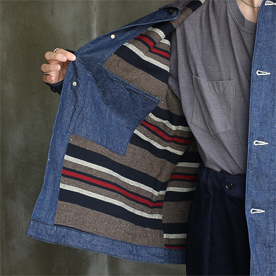 表衿はコーデュロイを使用し、裏地にはガラ紡ブランケットが総裏でつきます。