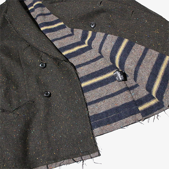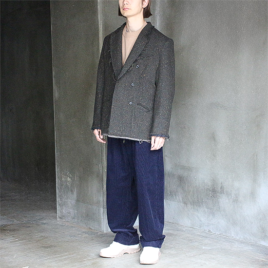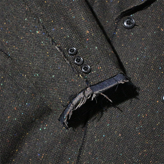 クラシックな印象ながら、随所を断ち切りで仕上げ、裏地にはウールブランケットを採用している。