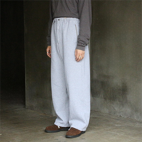 全体的にカジュアルな雰囲気が漂う一本ですが、両脚にセンターシームが施されることで、どこかスタイリッシュな表情も引き出されています。肉厚のフリース素材を使用し、保温性となめらかな肌触りを兼ね備えた仕上がりです。