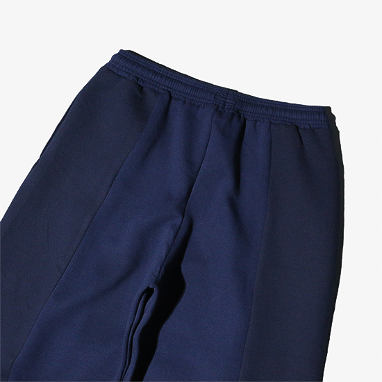 ドッキングスエットパンツは、USEDのスエットパンツ2本を、縦方向に裁断した後に縫い合わせて作られている。