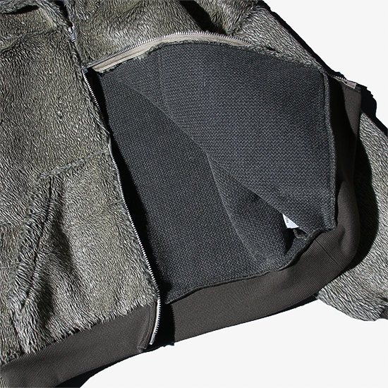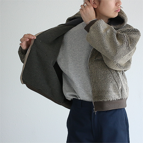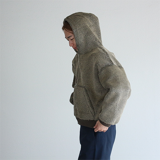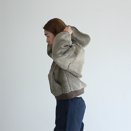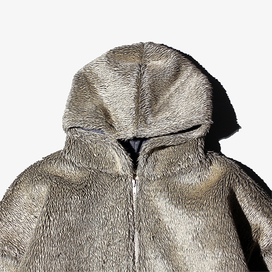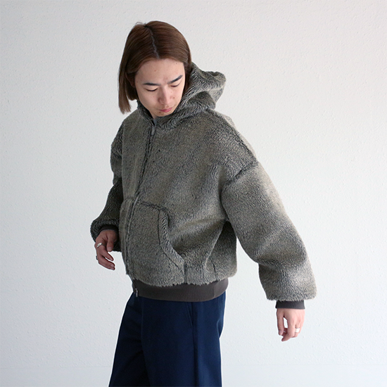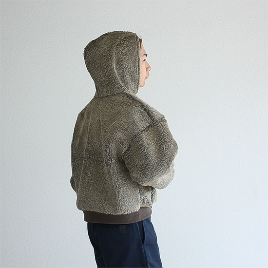 作業現場でよく見られるボアを使用した防寒着から着想を得たボアパーカー。