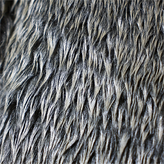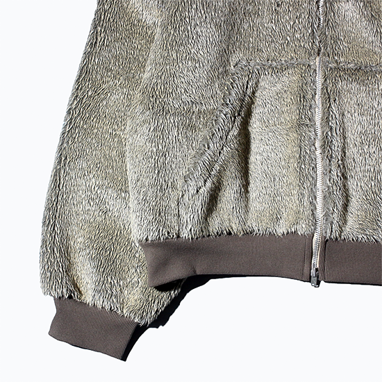 素材にはボアを使用し、毛先に顔料加工を施すことで、独特のムラ感と表情を持たせた。質感のコントラストが際立ち、存在感のある仕上がりに。