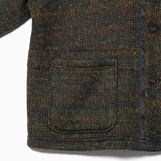ベーシックなデザインですが、負担のかかる前立やポケット口に施された補強の布とステッチが〈EG〉らしい、ワークウェアのような雰囲気も感じさせる一着です。