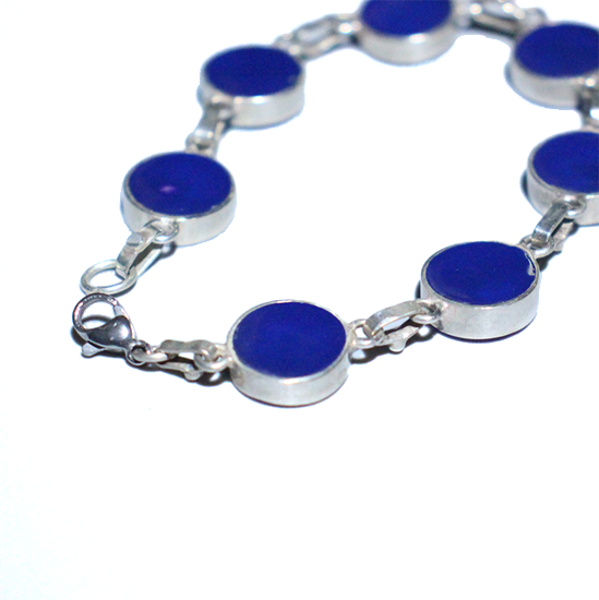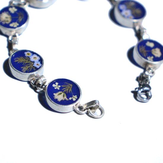 押し花を閉じ込めたトップを使用したブレスレットになります。